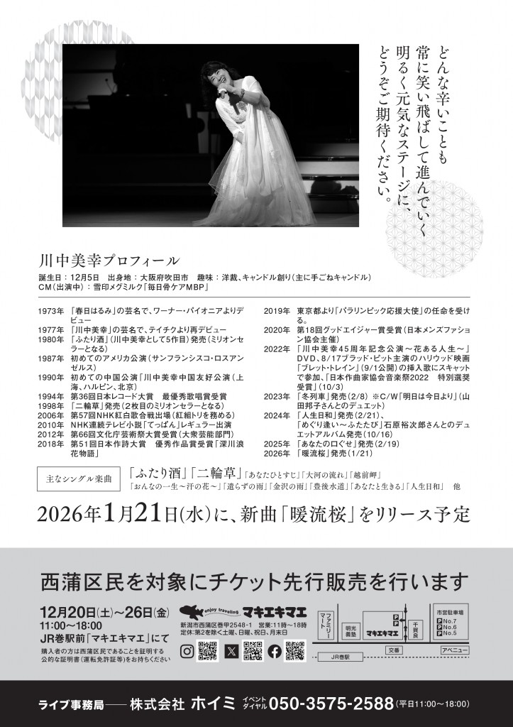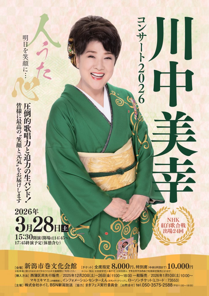 【3/28(土)巻文化会館】「川中美幸コンサート2026」開催決定!